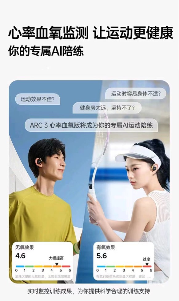 Secondly, the ARC 3 Sound Arc Sport Pro can make sports more scientific and efficient. Unlike other open sports headphones, it not only innovatively adds the function of heart rate and blood oxygen monitoring, but also comes with a series of sports and health services.