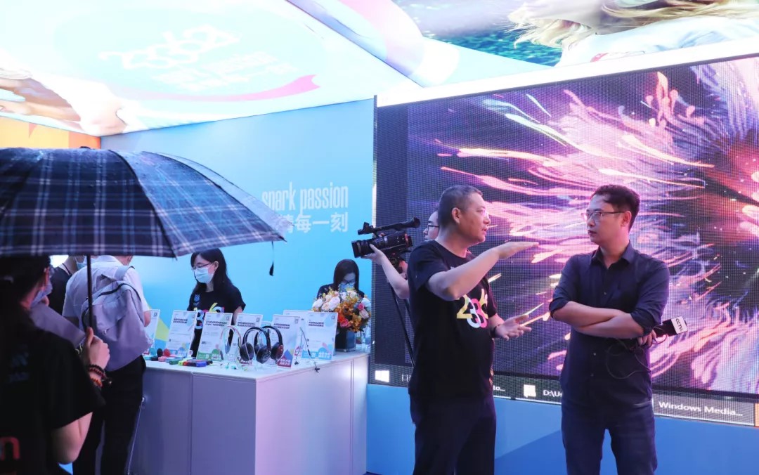 在賽格電子廣場(chǎng)的活動(dòng)現場(chǎng),斷斷續續的小雨并未影響參展商與游客高昂的積極性,為了讓冒雨前來(lái)逛展的游客覺(jué)得不枉此行,參展商們紛紛選擇以更高的熱情來(lái)進(jìn)行回饋,而在這其中,233621?品牌展區時(shí)尚炫彩的展區設計與精彩紛呈的節目設置,絕對稱(chēng)得上今晚閃耀全場(chǎng)最靚的展區之一。中央電視臺特意來(lái)到展區進(jìn)行現場(chǎng)攝制,冠旭電子董事長(cháng)、233621?品牌創(chuàng )始人吳海全先生接受了央視記者的現場(chǎng)采訪(fǎng)。