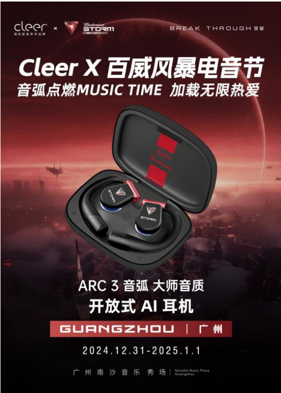 在這樣的氛圍中,Cleer與百威風(fēng)暴電音節驚喜聯(lián)名,推出專(zhuān)屬聯(lián)名款-Cleer ARC 3 音弧 開(kāi)放式AI耳機,當精湛的聲學(xué)科技遇上狂熱的電音文化,會(huì )碰撞出怎么的火花?