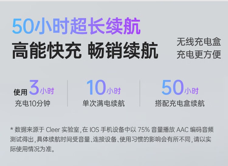 Cleer ARC 3音弧單次充滿(mǎn)電即可提供長(cháng)達10小時(shí)的續航時(shí)間。這是什么概念,以聽(tīng)歌為例,每首歌按照4分鐘來(lái)算,大概能聽(tīng)160首歌曲。而充電倉還能額外支持40小時(shí)的續航,總續航時(shí)長(cháng)達50小時(shí),并還支持快充,充電10分鐘,即可聽(tīng)歌2小時(shí),真正做到“無(wú)懼旅途漫長(cháng)”,簡(jiǎn)直春運路上的“電量戰神”。無(wú)論你是一天一夜的長(cháng)途奔波,還是多次短途切換,這款耳機都能始終為你提供充足的電力支持。耳機充電倉的設計也經(jīng)過(guò)精心優(yōu)化,體積小巧,塞進(jìn)外套口袋輕輕松松,隨時(shí)隨地“滿(mǎn)電復活”。不占地方,續航還持久,這不就是耳機屆的“居家旅行必備良品”嗎?