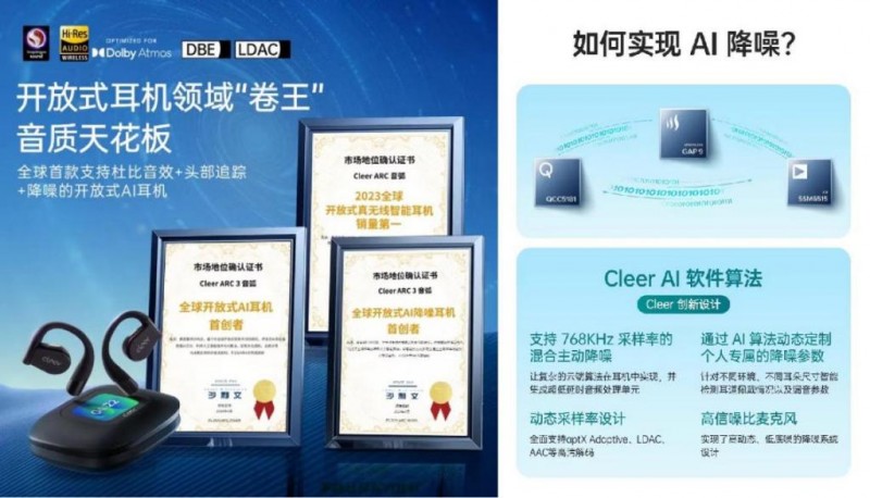 此外,Cleer ARC 3 音弧的“新”,“新”在A(yíng)I。與傳統耳機不同的是,Cleer ARC 3 音弧是全球首款開(kāi)放式AI耳機。這意味著(zhù)它除了具備除了“大師音質(zhì)”外,還擁有著(zhù)令人驚喜的AI語(yǔ)音控制、AI體感操控、AI聲境恒聽(tīng)等六大AI功能。