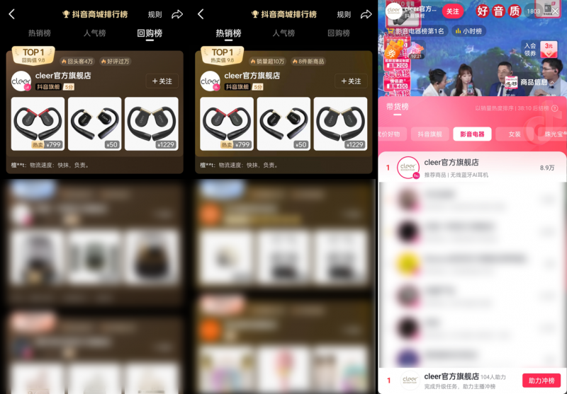 從理念共鳴到產(chǎn)品落地,Cleer 的匠人精神在聲學(xué)研發(fā)中具象為可感知的技術(shù)突破。從早期 ARC 音弧系列開(kāi)創(chuàng )開(kāi)放式耳機賽道,到 ARC 5再一次打破開(kāi)放式耳機音質(zhì)天花板,Cleer 的每一款產(chǎn)品都在踐行“用科技還原聲音本真”的承諾。自 2021 年首款 ARC 音弧橫空出世,Cleer便以“開(kāi)放聆聽(tīng)”為支點(diǎn)撬動(dòng)行業(yè)變革 —— 當傳統耳機還在追求物理降噪的封閉性時(shí),Cleer 已通過(guò)“貼耳不入耳”的懸浮式設計,在音質(zhì)與舒適度之間找到了黃金平衡點(diǎn)。2024年,這一創(chuàng )新精神催生了首次打破“開(kāi)放不可降噪”技術(shù)壁壘的ARC 3,憑借卓越音質(zhì)與突破性 AI 降噪技術(shù)的創(chuàng )新融合,在618期間表現亮眼,斬獲抖音平臺商品榜、店鋪榜、影音電器榜三大行業(yè)累計成交榜單的TOP1;雙11購物節期間,入選抖音“雙十一必買(mǎi)清單”并多次霸榜抖音影音電器熱銷(xiāo)榜和回購榜榜首,成為深受用戶(hù)喜愛(ài)的“現象級爆款”。